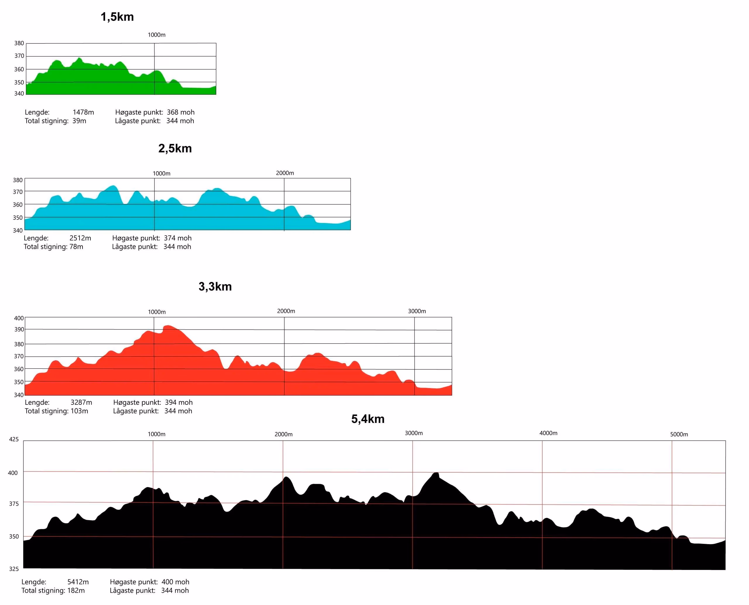 I tillegg finnes det en lengre runde på 5,4 km, samt en turløype som går ned mot bygda.